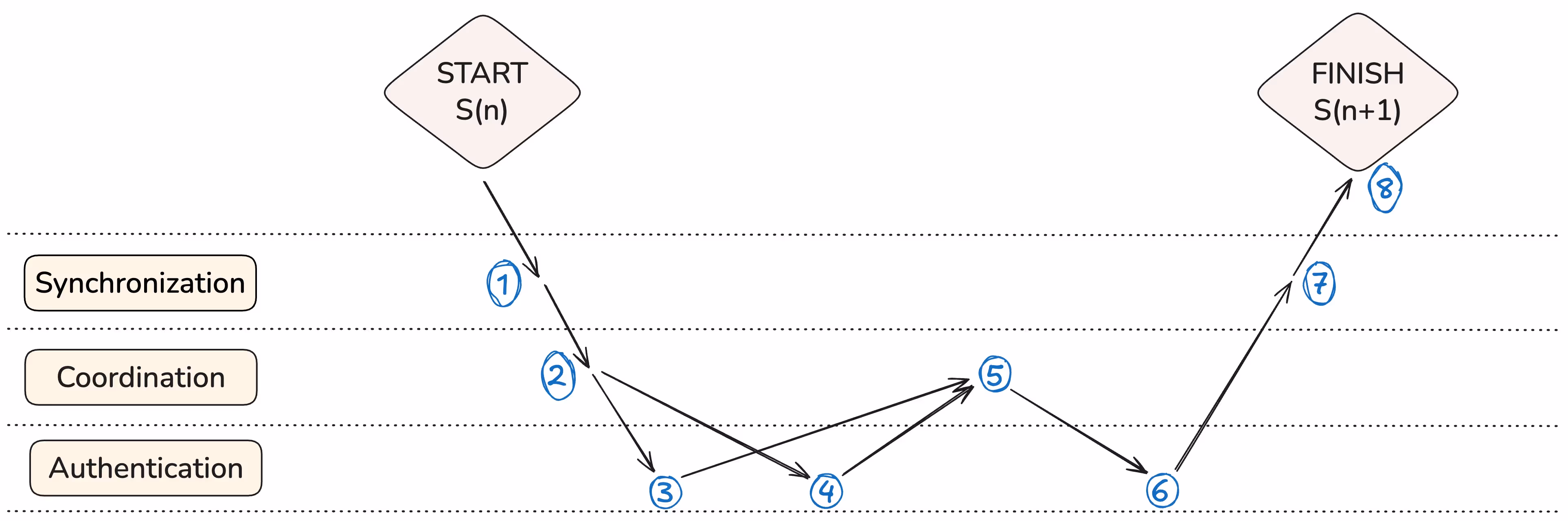 - Initial synchronization: all cosigners confirm they are on the same latest state S(n)