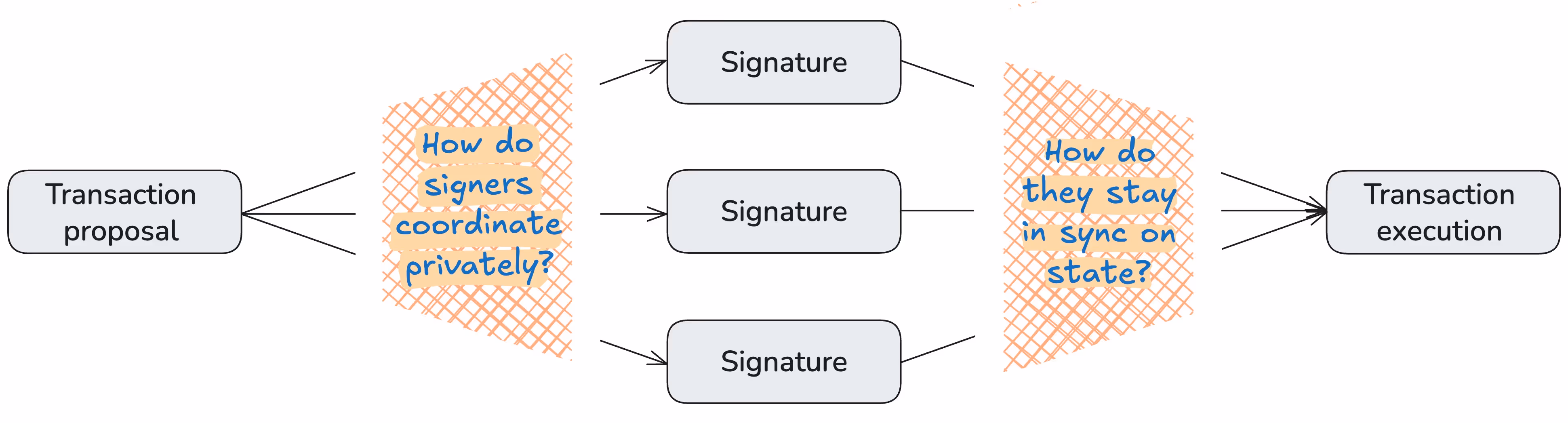 Since signers no longer share a public onchain state, coordination becomes harder. A cosigner may not know what the latest account state is, whether another signer has already updated it, or even if the proposed transaction is still relevant.