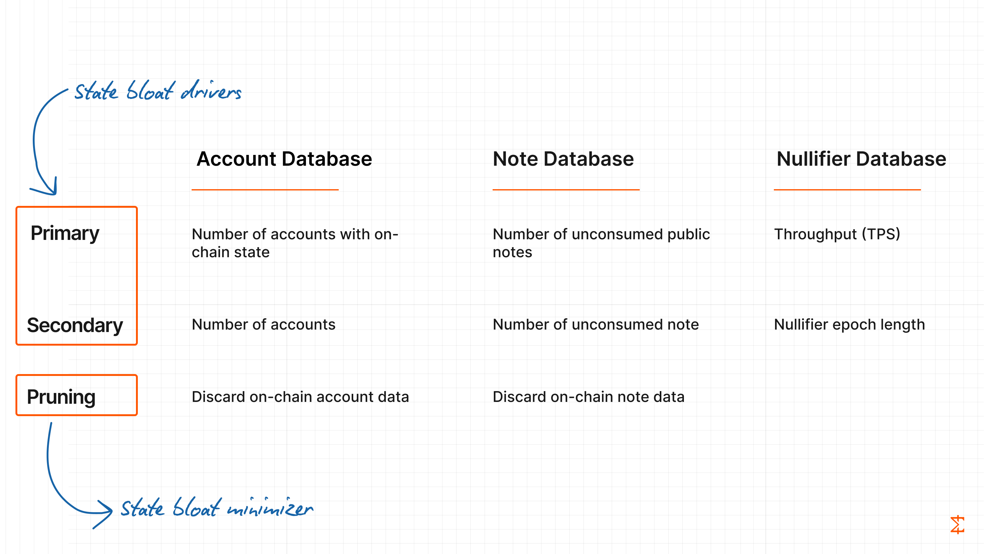 So, in Miden, there are epochs, and a new nullifier database is created after every epoch. The operator stores the last two full trees and all historical nullifiers’ tree roots. That means older notes can still be spent; only there is a bit more work to be done by the user. By adding this epoch parameter to the nullifier database, the primary driver of state bloat becomes transactions per second.